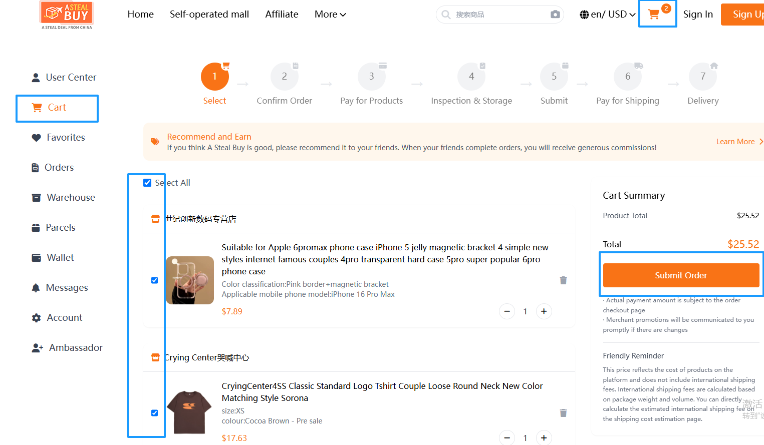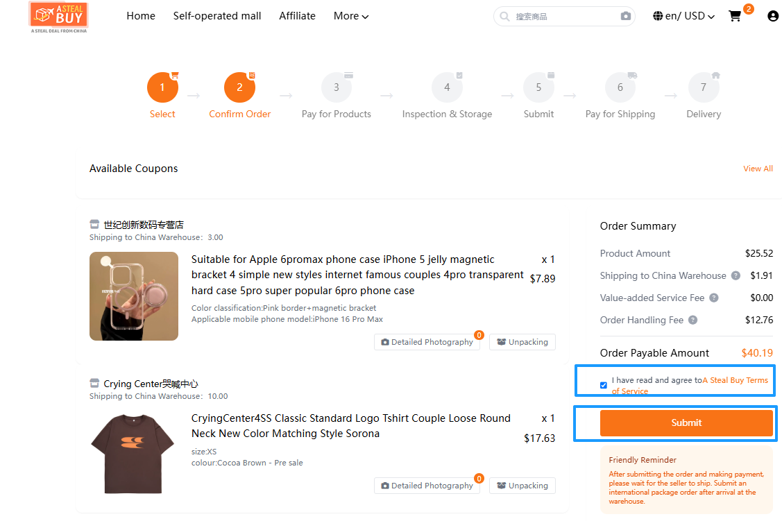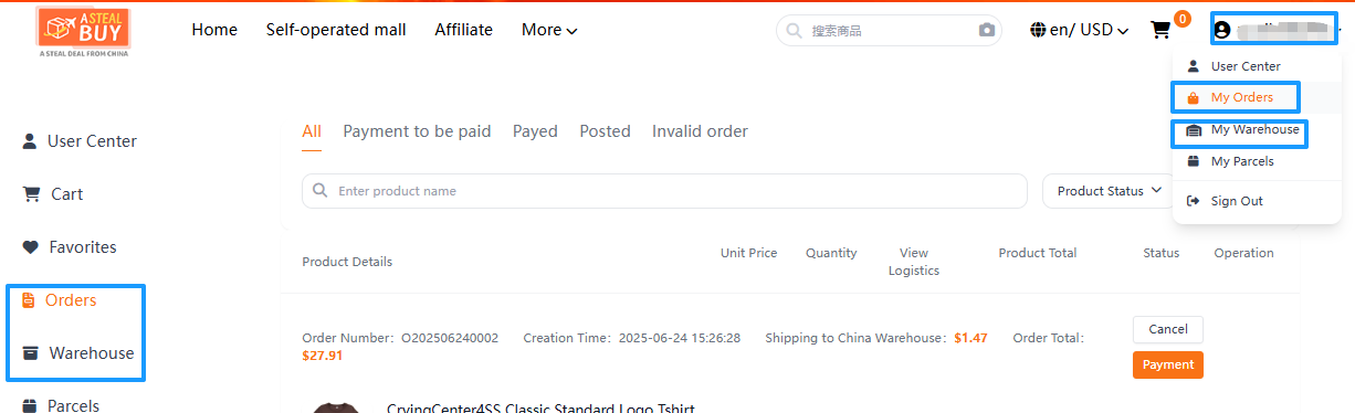 Step 4: Astealbuy Purchase Your orders to Astealbuy Warehouse