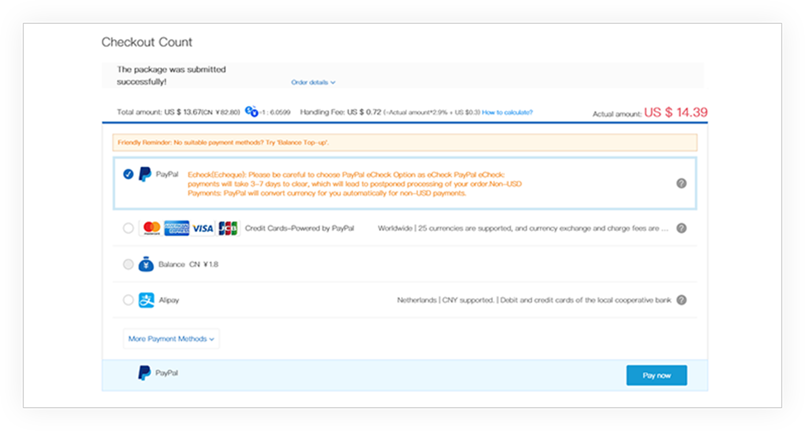 Select your payment method and pay for the item(s) and Chinese local delivery fee.