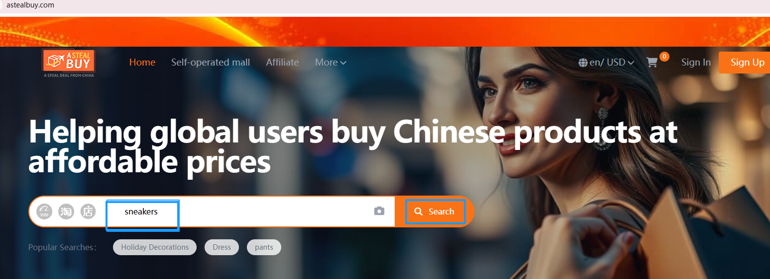 Use the product name/keywords to search on Astealbuy and select from the results on Taobao, Tmall, 1688 and Weidian.