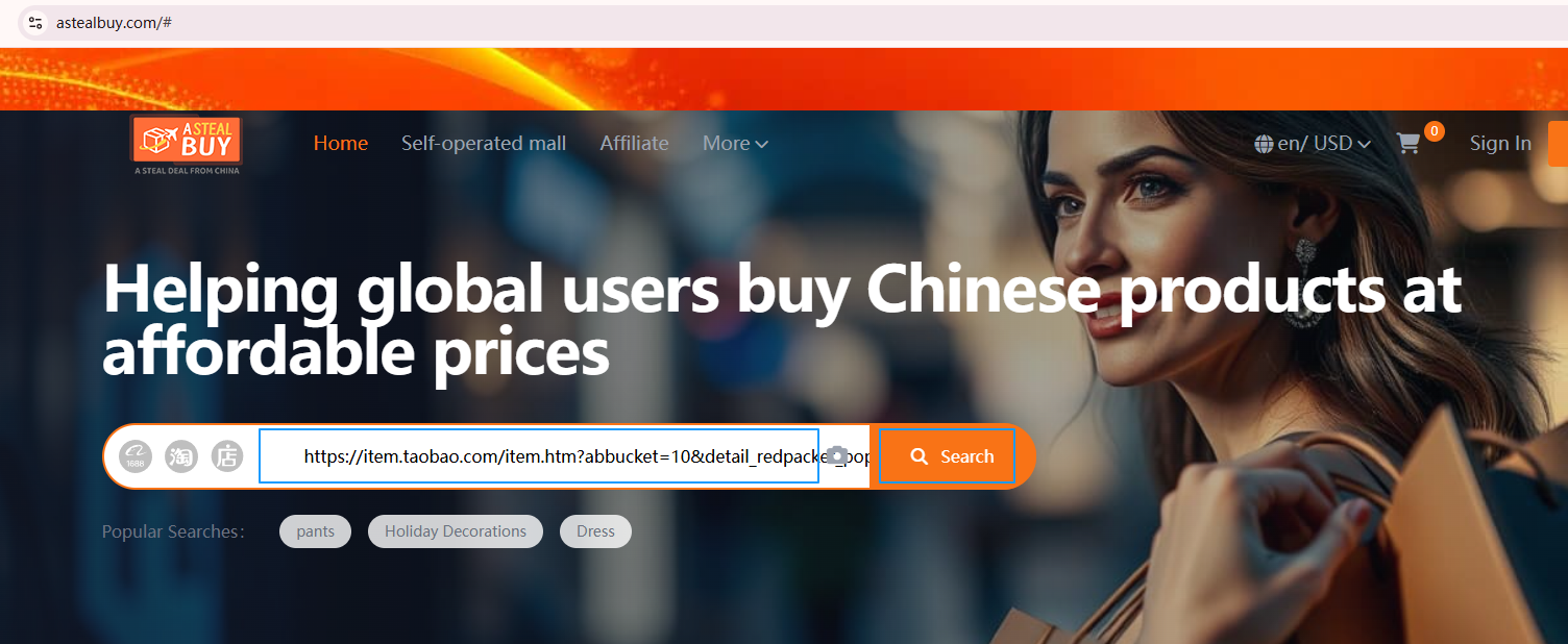 Select product(s) from Chinese e-commerce websites and copy the links of your desired products. Then paste the links in the search field on Astealbuy.